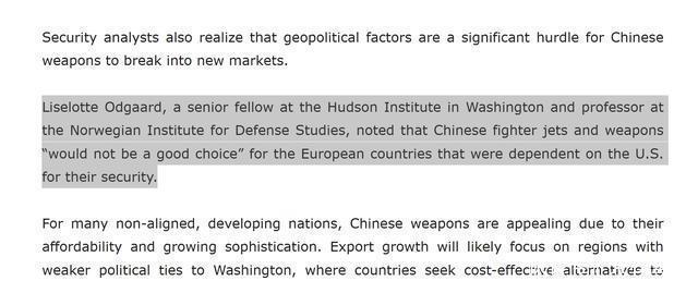 基于此,我们可以把全球军火市场分为两大块:一块是北约、西方国家为主 ,我们的主战武器很难进入的市场, 这个市场在军事民用设备、非致命武器装备上还是有机会的 ,从防弹头盔、防弹衣(例如新加坡、英国都有装备)到民用无人机、电动汽车、半导体设备等。 另一块则是我们可以进行正常军售贸易的国家。 除了前面提到的五国之外(即 中东市场),东南亚、非洲(除埃及以外)可以视为我们对外军售的另外两大重点市场 , 我们暂且将其称为“重点市场” 。 近些年来希望摆脱俄系武器羁绊的中亚、具有庞大市场潜力的南美洲和对中国武器装备接受度越来越高的东欧(塞尔维亚、白俄罗斯、俄罗斯三国),我们暂且称其为“潜力市场”。 不过在这个话题展开之前,我们首先要说明,北约、西方市场我们先进主战装备进不去,和我们武器性能无关。 正如哈德逊研究所高级研究员、挪威国防研究院教授奥德高所言,这些国家依赖美国的军事安全,因此不可能选择我们的武器。